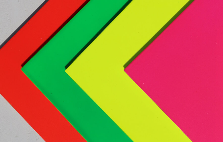 Applicare il prodotto su fondo bianco permette di ottenere il miglior risultato in termini di copertura e brillantezza dei colori, creando il tipico effetto evidenziatore. La gamma di fluorescenti proposta da Cromas è declinata nei classici giallo, verde, arancio, rosso, fucsia e violetto.