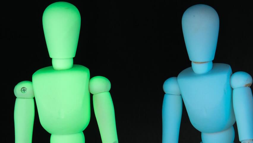 È necessario accennare qualcosa a proposito della differenza fra questi due fenomeni luminosi. In entrambi i casi, i pigmenti presenti all’interno del colore assorbono le radiazioni ultraviolette (non visibili all’occhio umano), per poi emetterle nello spettro visibile.